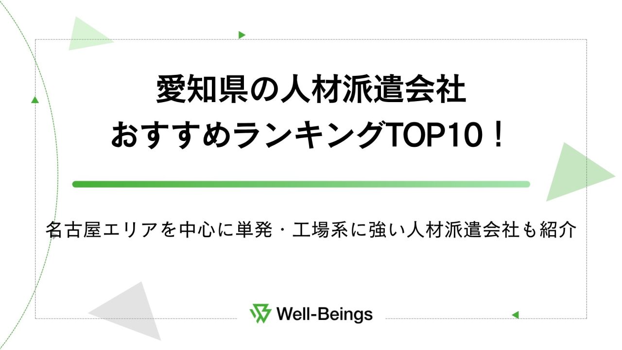 - 愛知県のおすすめ派遣会社おすすめランキングTOP10一覧【2025年10月最新】